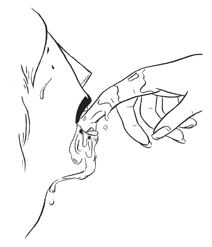 Nokte, mi foje ellitiĝas, brulanta pro febro. Mi poste malrapide frotas min kontraŭ la lavujo, dispremante mian pubon, por pli bone senti ĝian freŝecon.