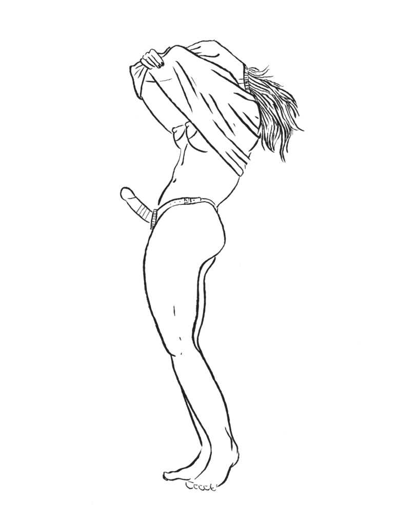Mi estis nuda, sed mi tenis miajn ŝtrumpetojn; mi rajtas fari ĝin, ĝi estas eĉ seksa – ĉar mi ne estas ulo.